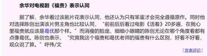 还得到了原作者余华的高度肯定。