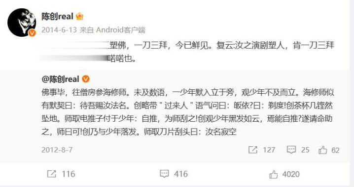 2022年的时候,陈创说过一个故事。